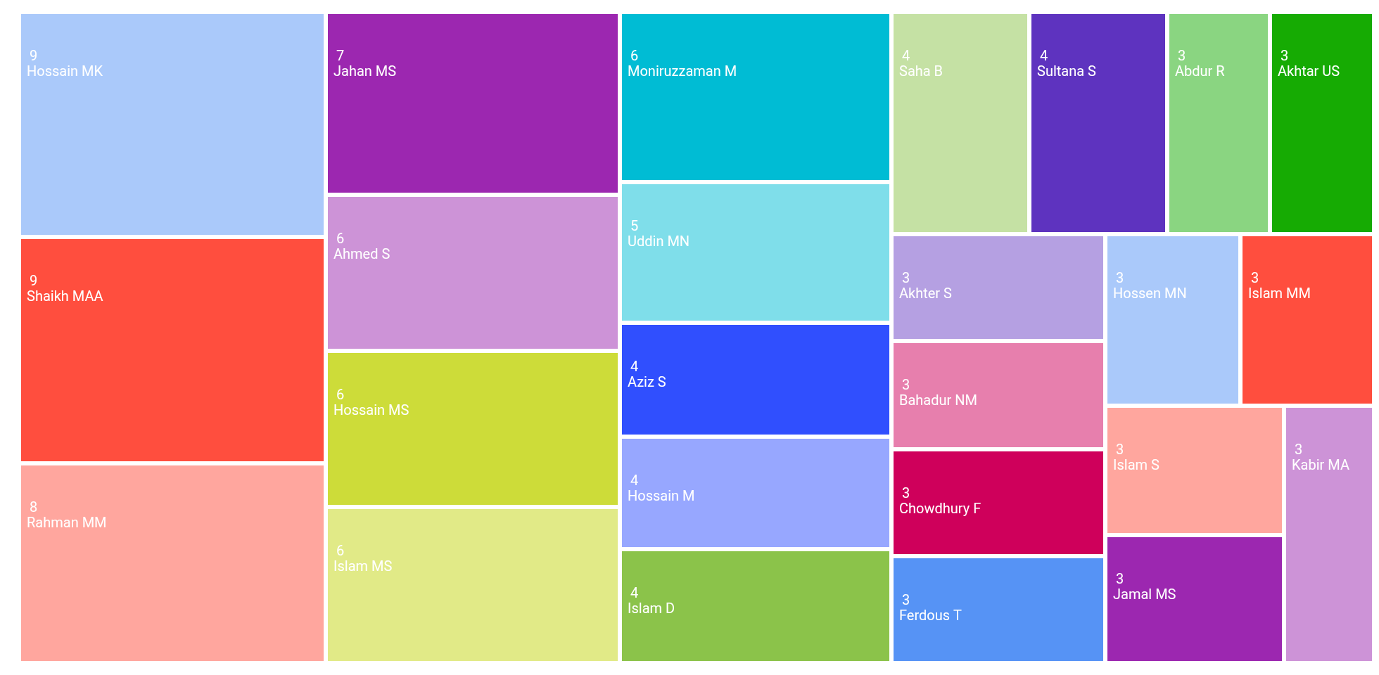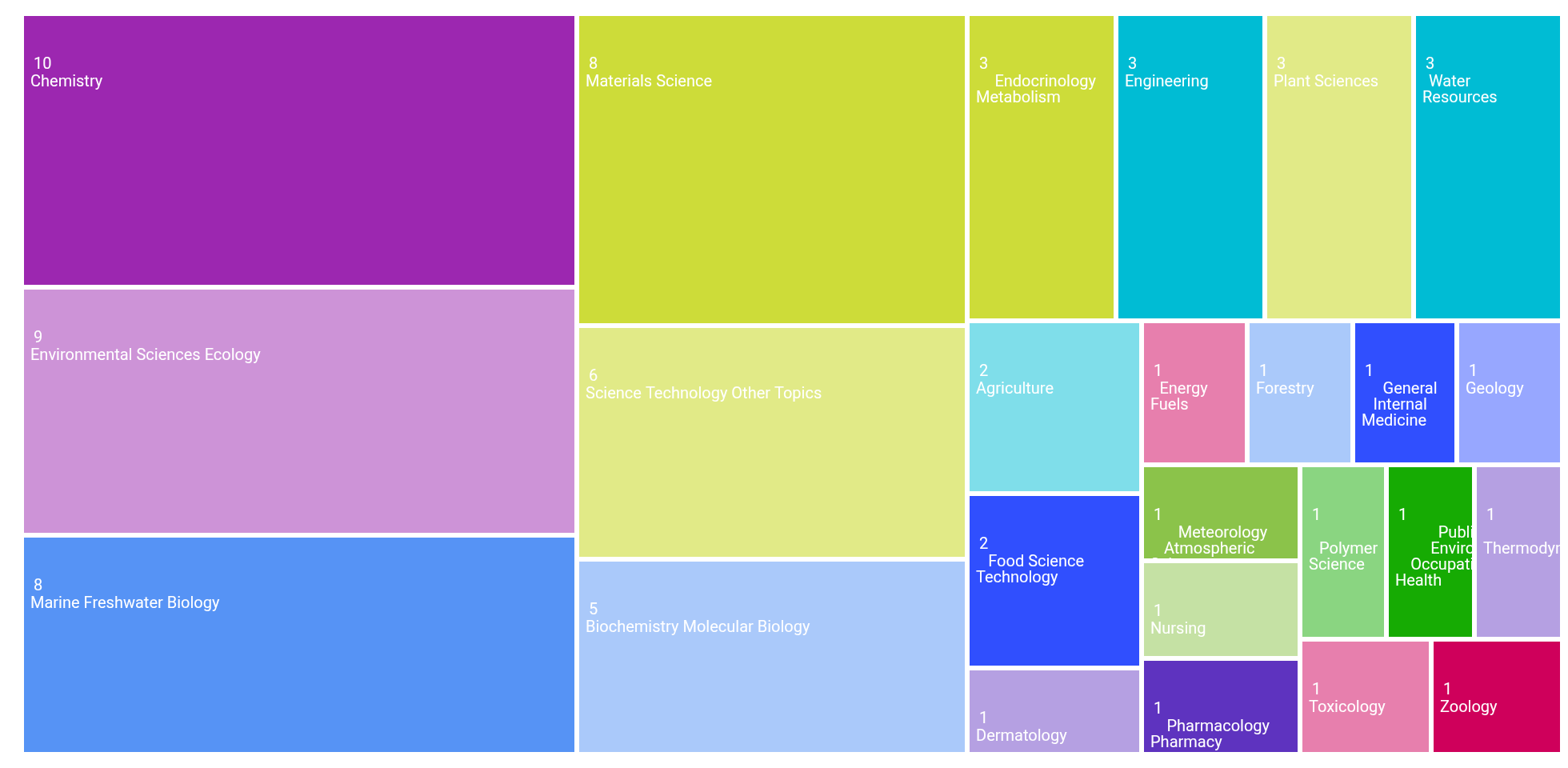 The areas of research publication categories in the TreeMap: