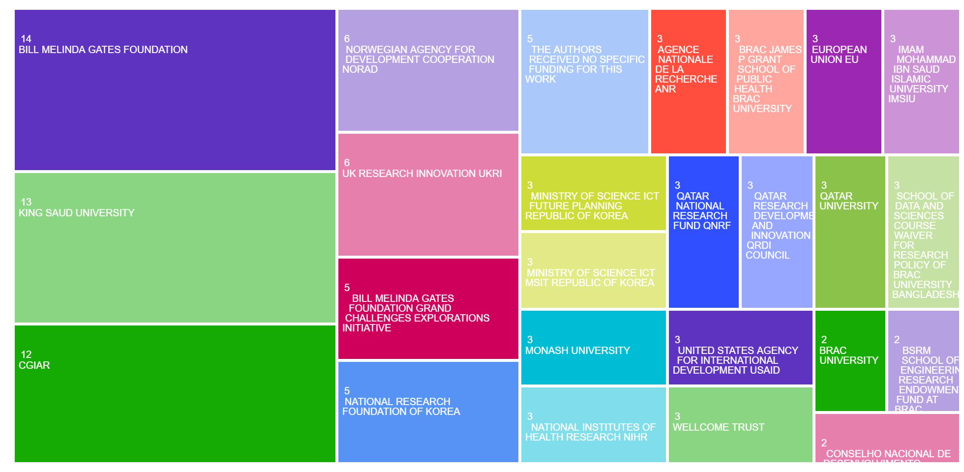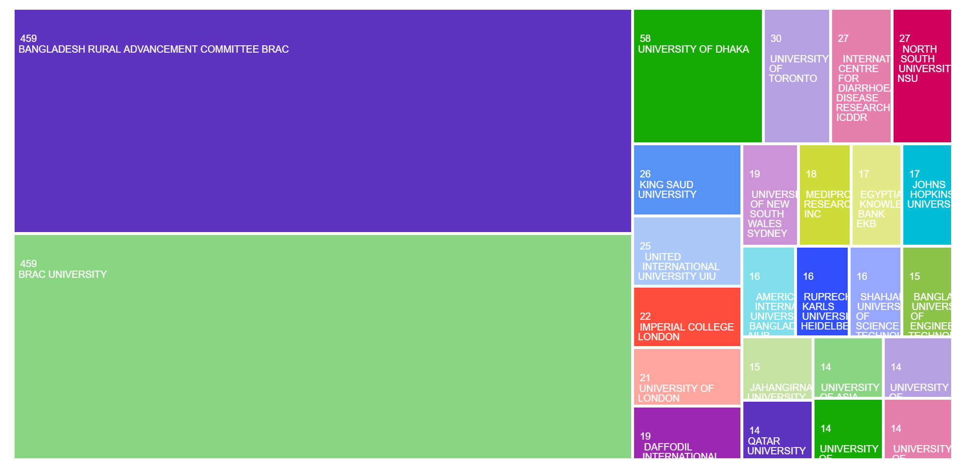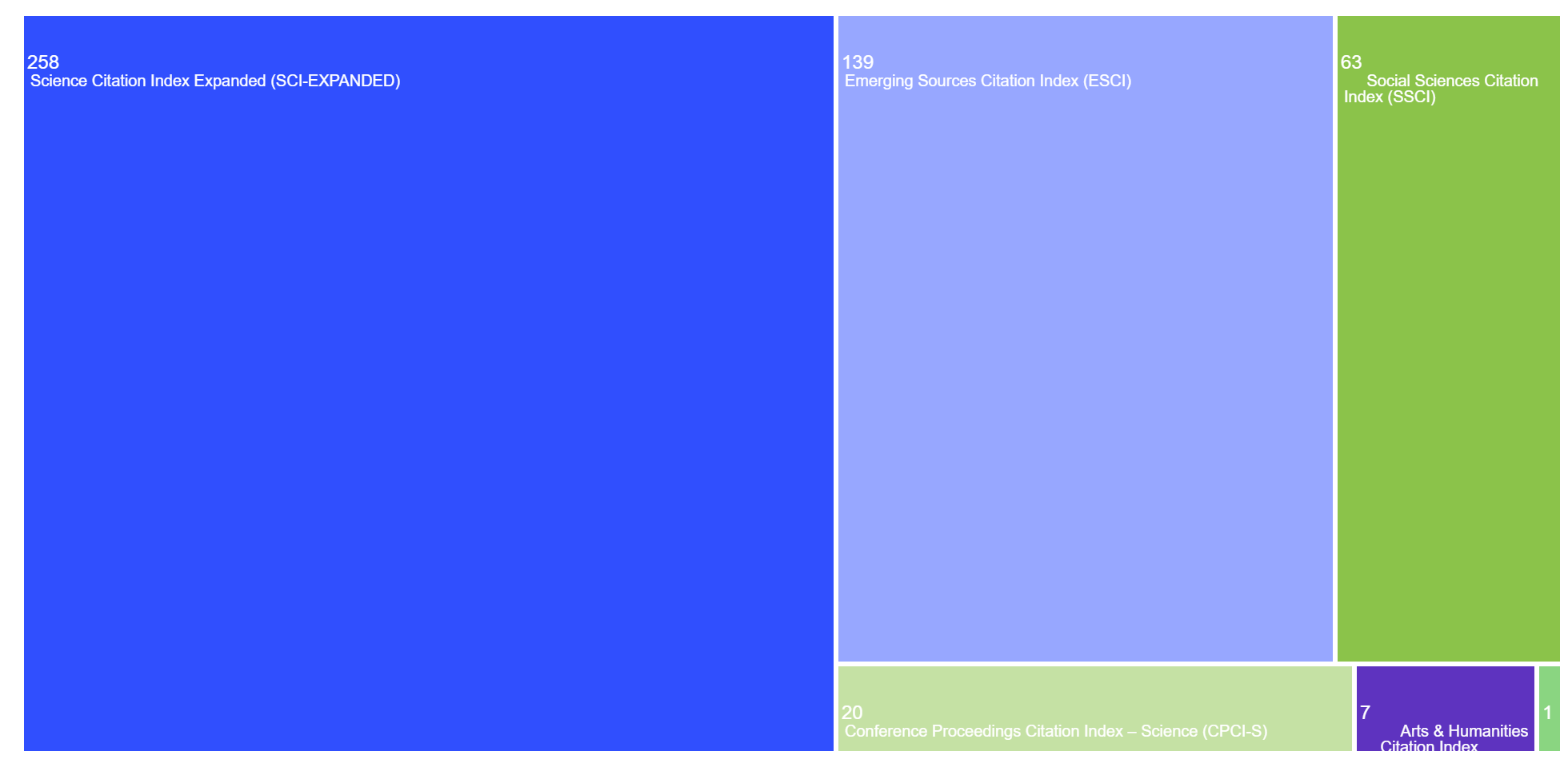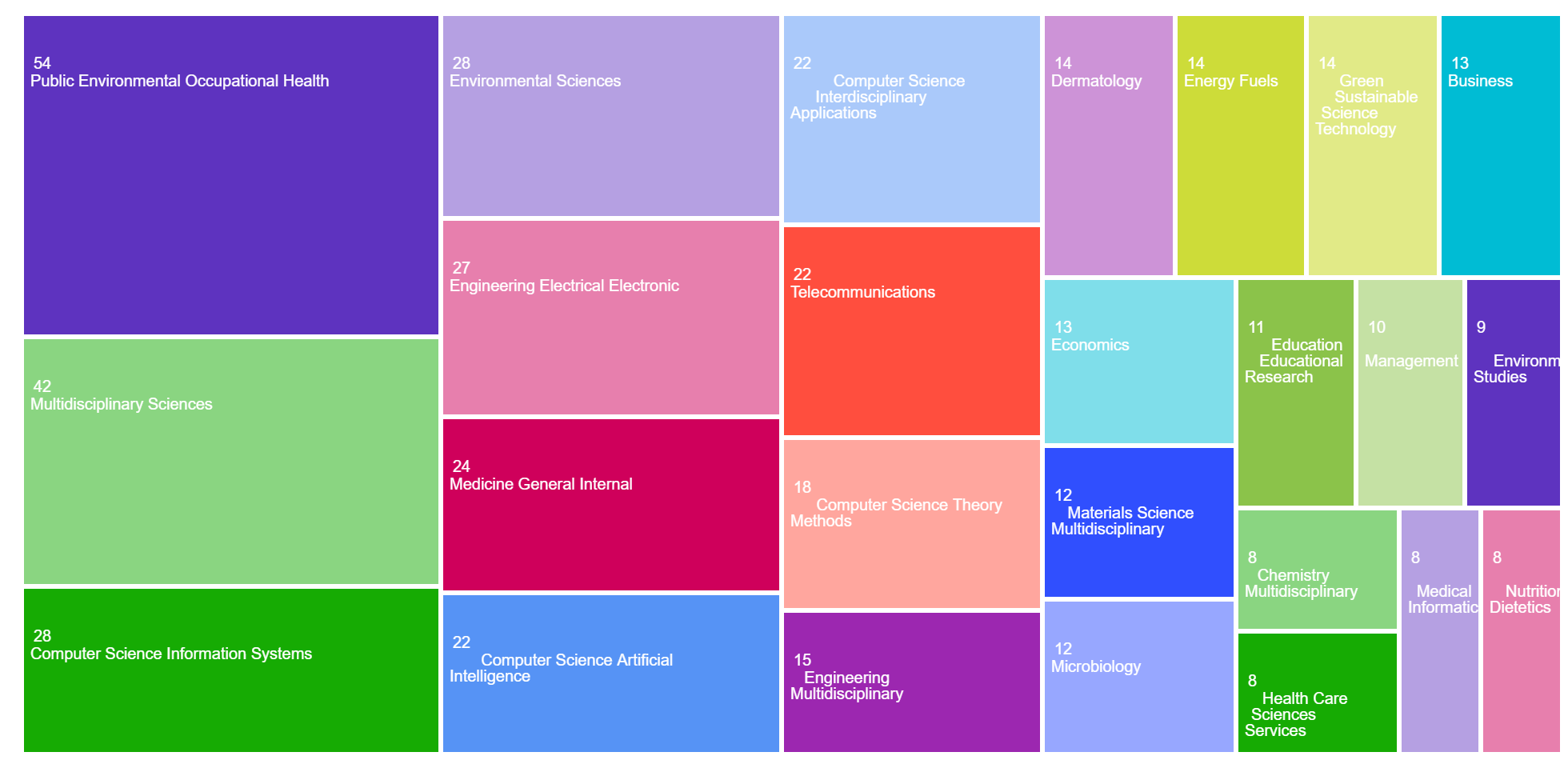 The areas of research publication categories in the TreeMap: