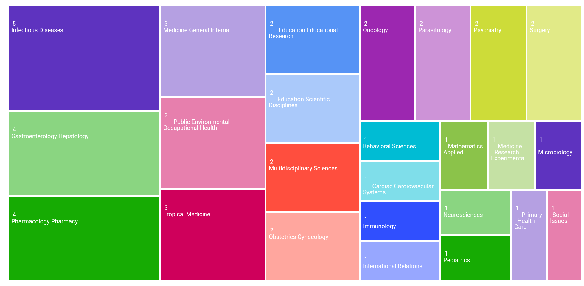 1. The majority of publications are in the fields of Infectious Diseases and Gastroenterology, pointing to SSMC’s focus on relevant public health issues.