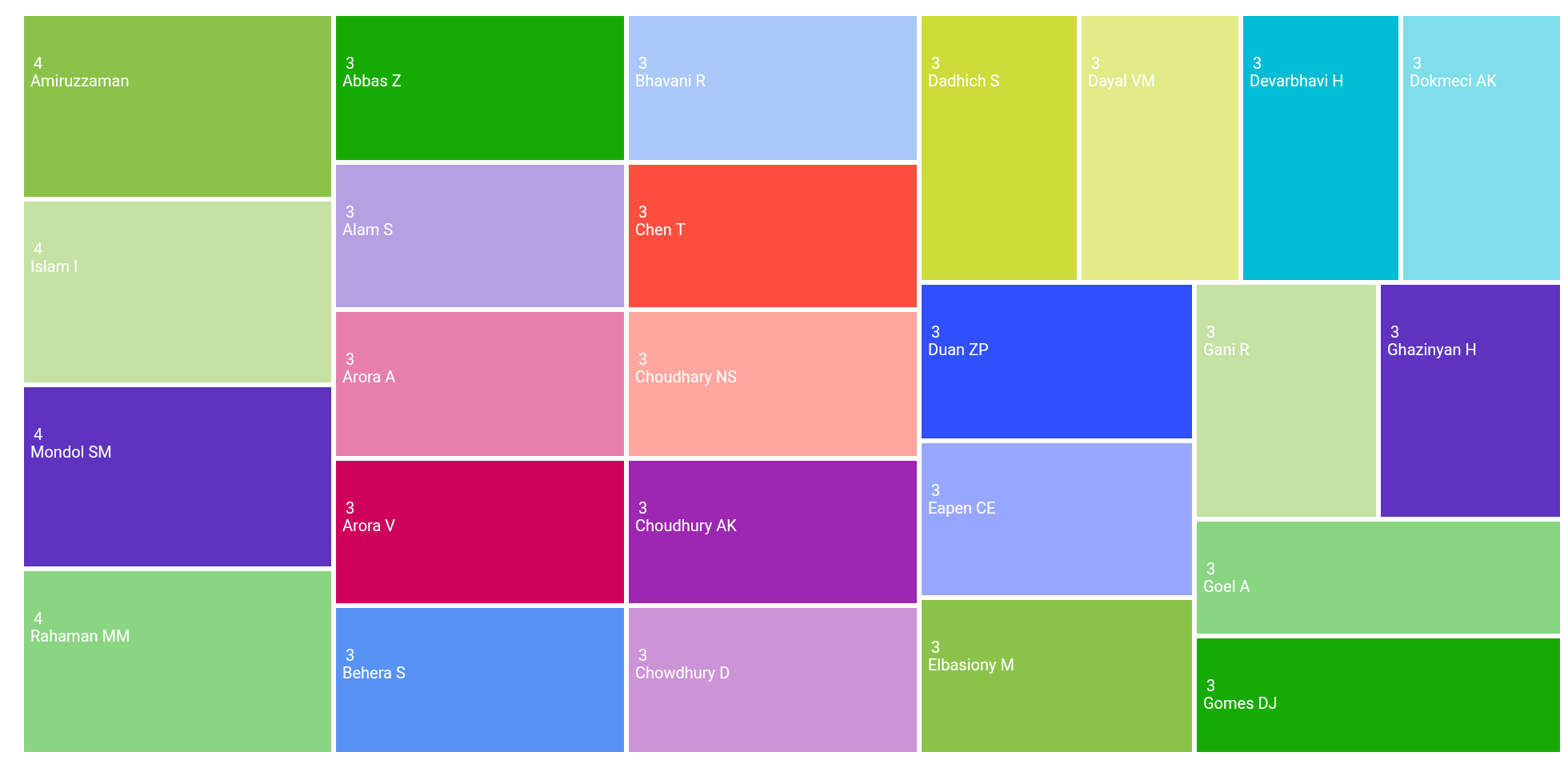 The areas of research publication categories in the TreeMap: