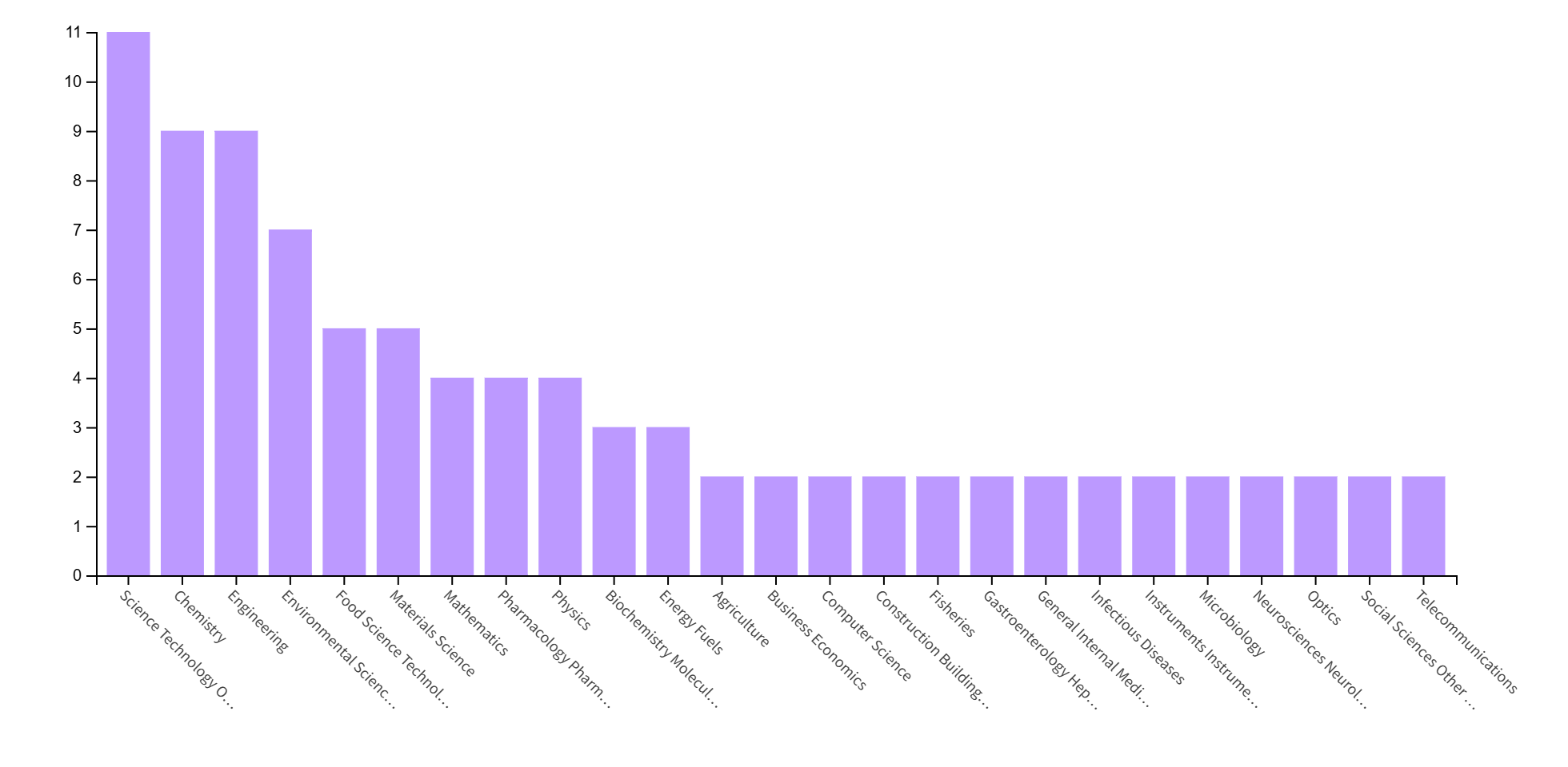 1. Multidisciplinary and applied science areas dominate, suggesting a shift toward problem-oriented and cross-cutting research.