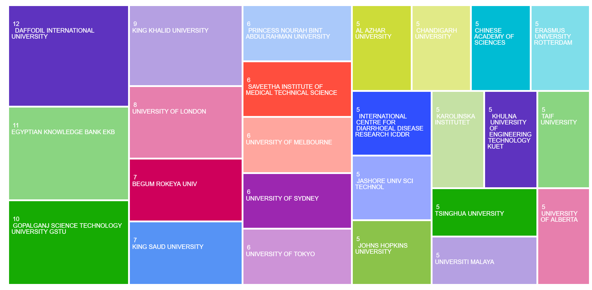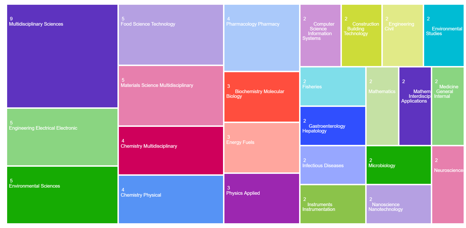 The areas of research publication categories in the TreeMap: