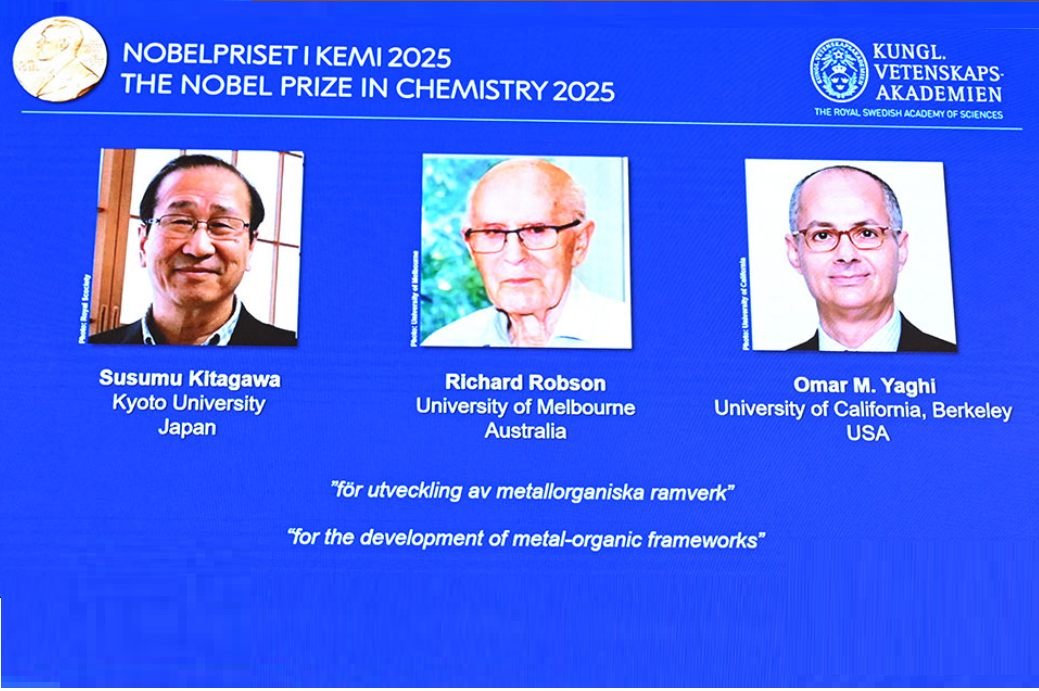 The 2025 Nobel Prize in Chemistry has been awarded to three pioneering scientists for developing metal–organic frameworks (MOFs)—ingeniously designed “molecular cages” made from metal atoms connected by organic linkers. These crystalline structures, resembling molecular Swiss cheese, have revolutionized materials science by offering a way to capture, store, and separate gases with exceptional precision. Science.