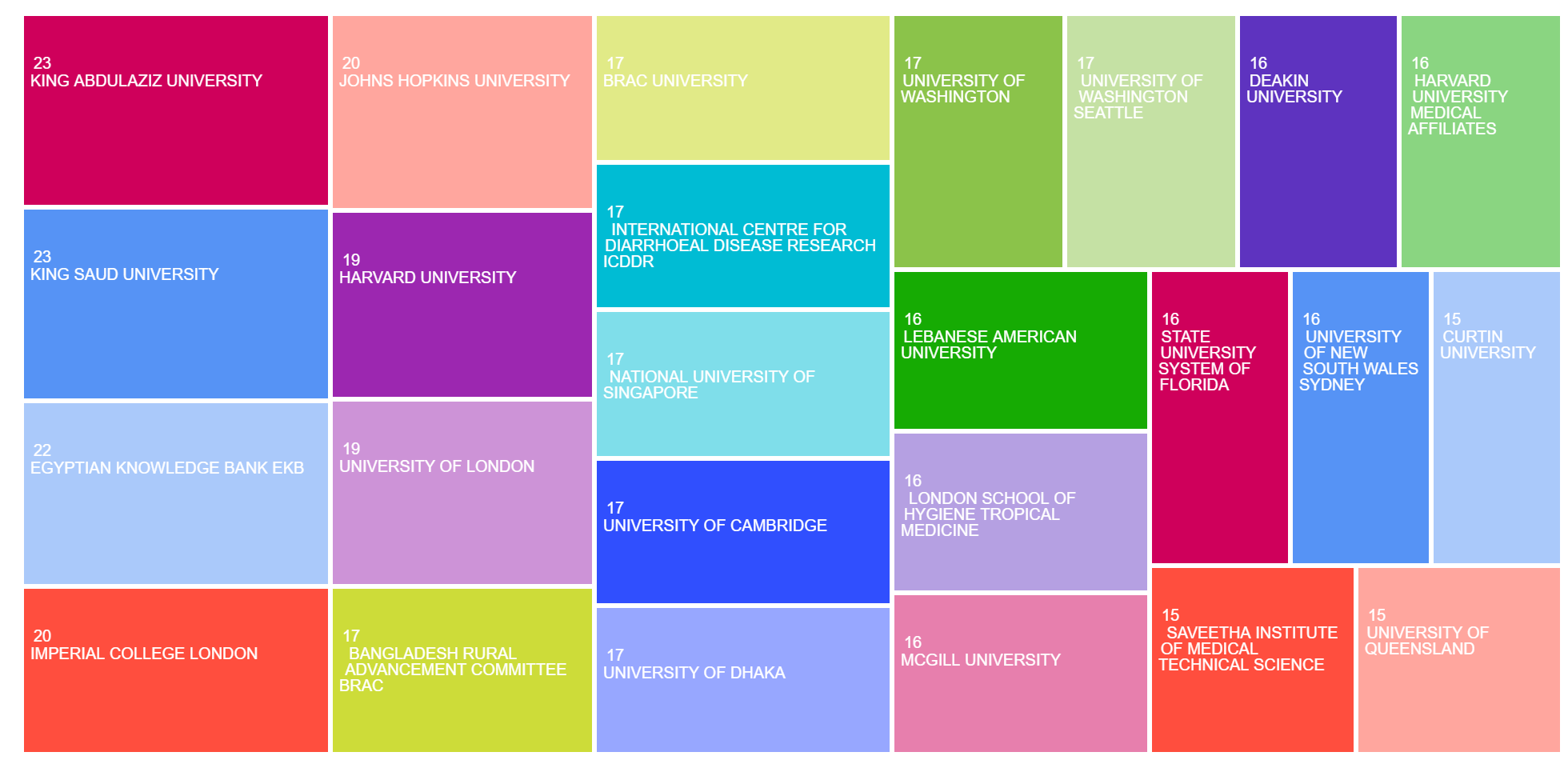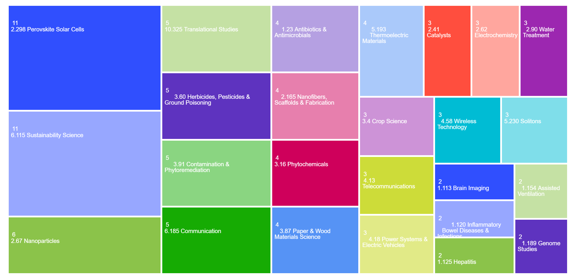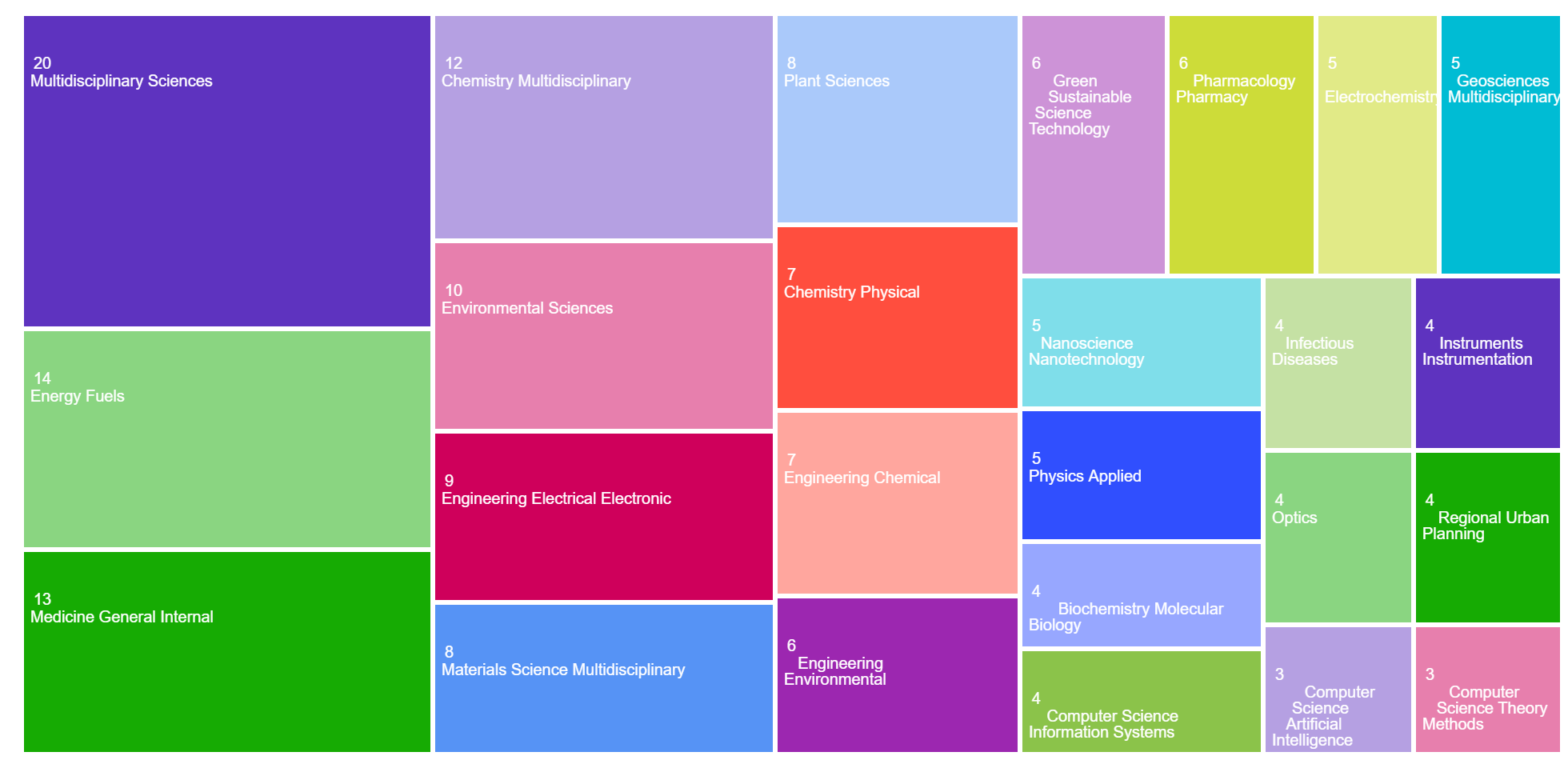 The areas of research publication categories in the TreeMap: