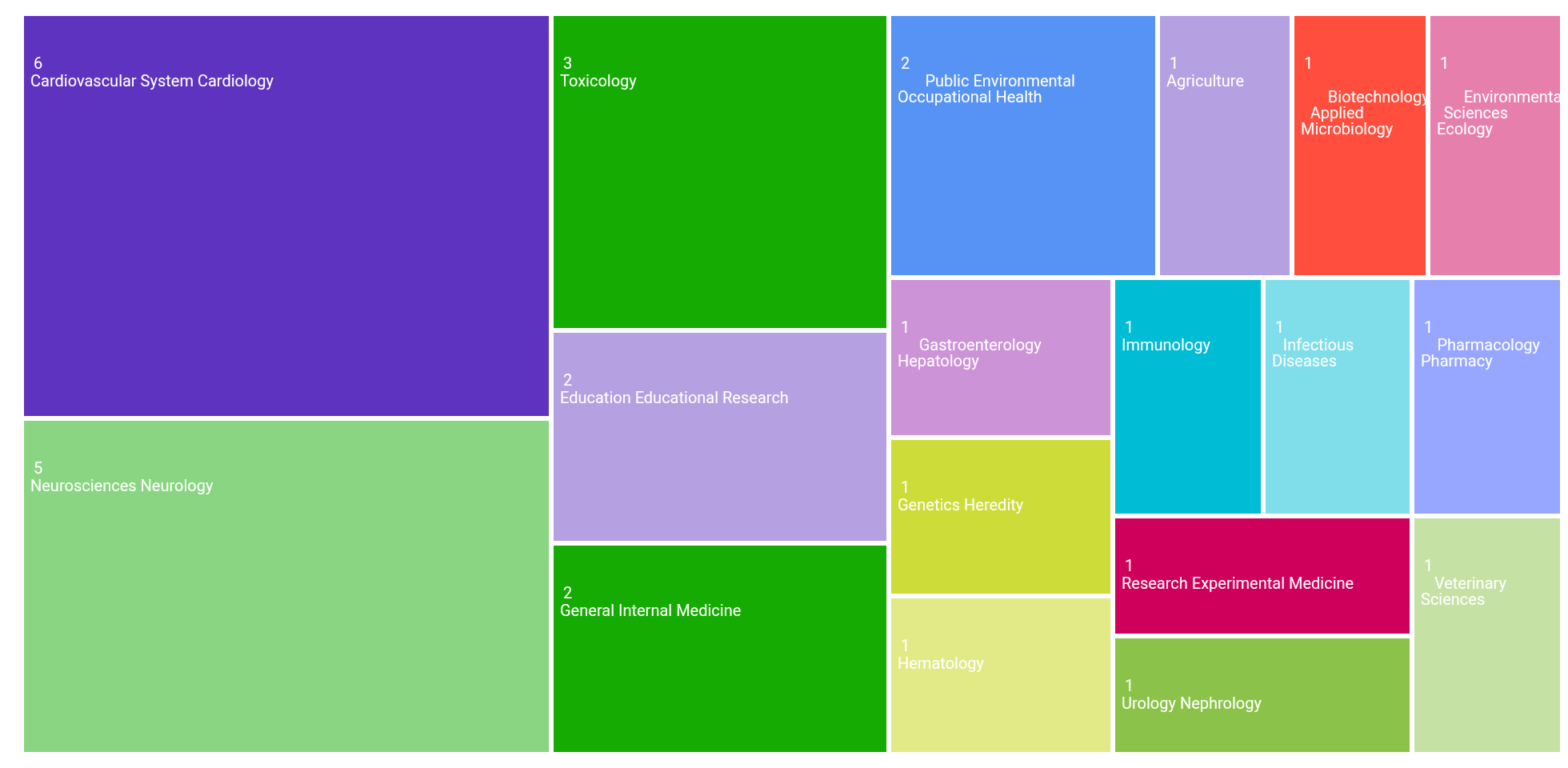 The areas of research publication categories in the TreeMap: