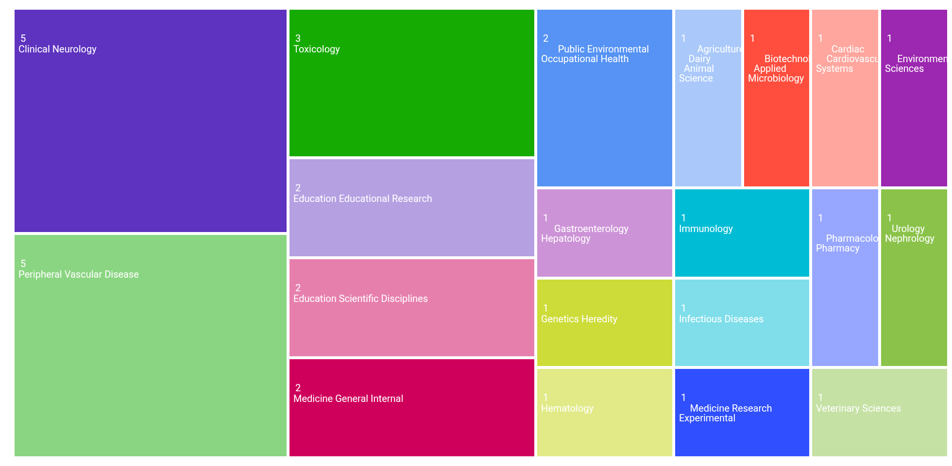| Toxicology | 3 | 13.636% |