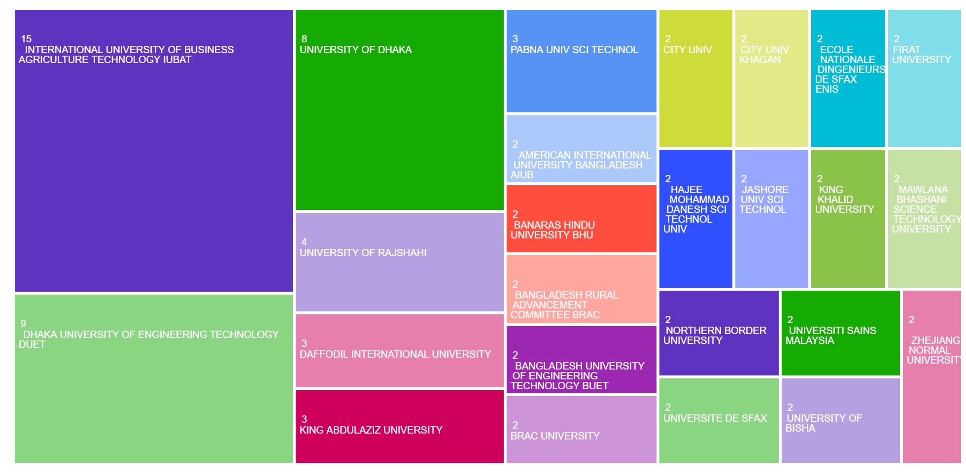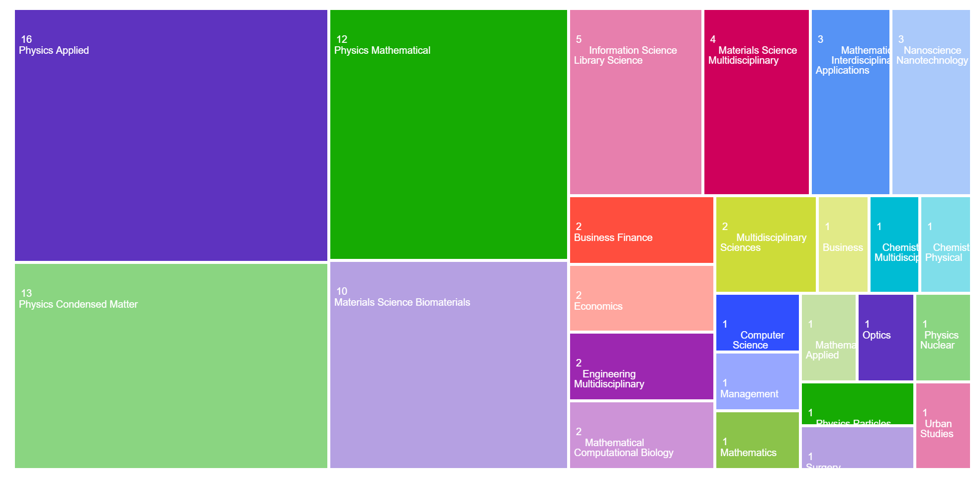 The areas of research publication categories in the TreeMap: