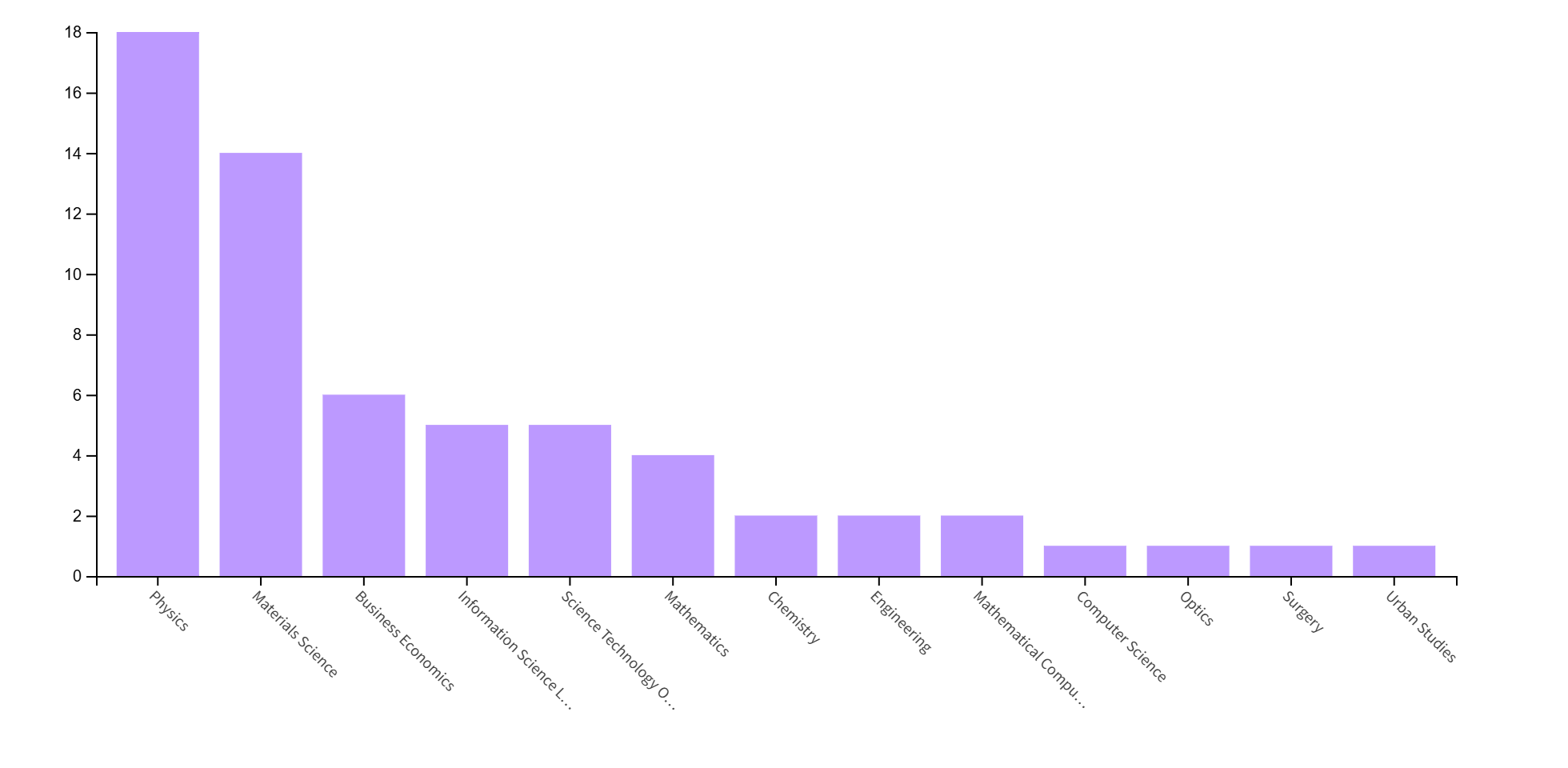 1. What factors contribute to the high concentration of research in physics-related fields compared to other disciplines?