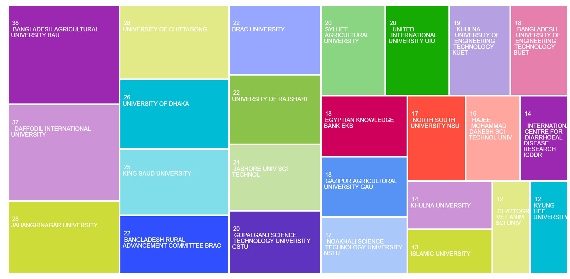 Environmental disciplines dominate, signaling Bangladesh’s research priority on sustainability and climate-related topics.