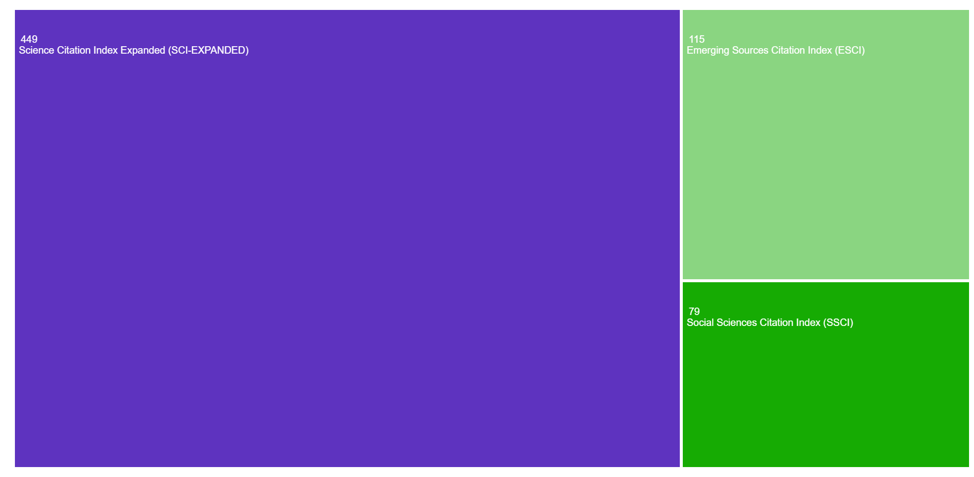 The areas of research publication categories in the TreeMap:
