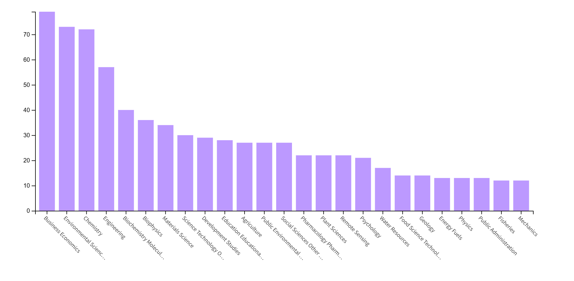1. Environmental and biochemical fields are the most prominent, reflecting global sustainability and health priorities.