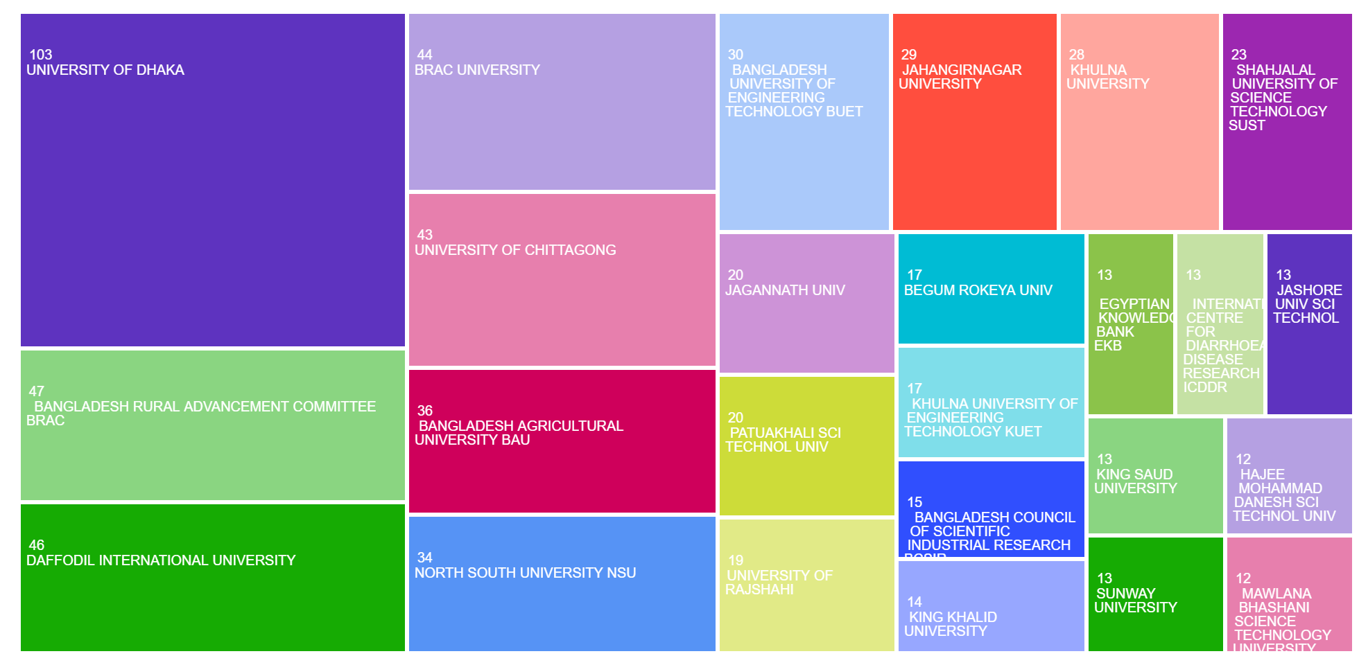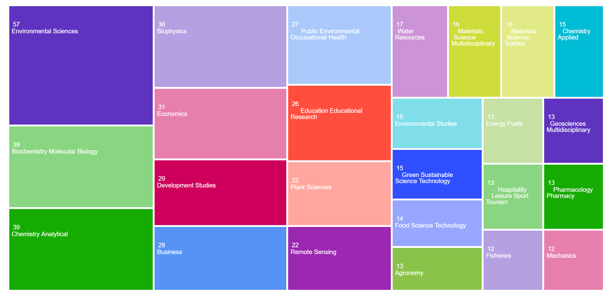 The areas of research publication categories in the TreeMap: