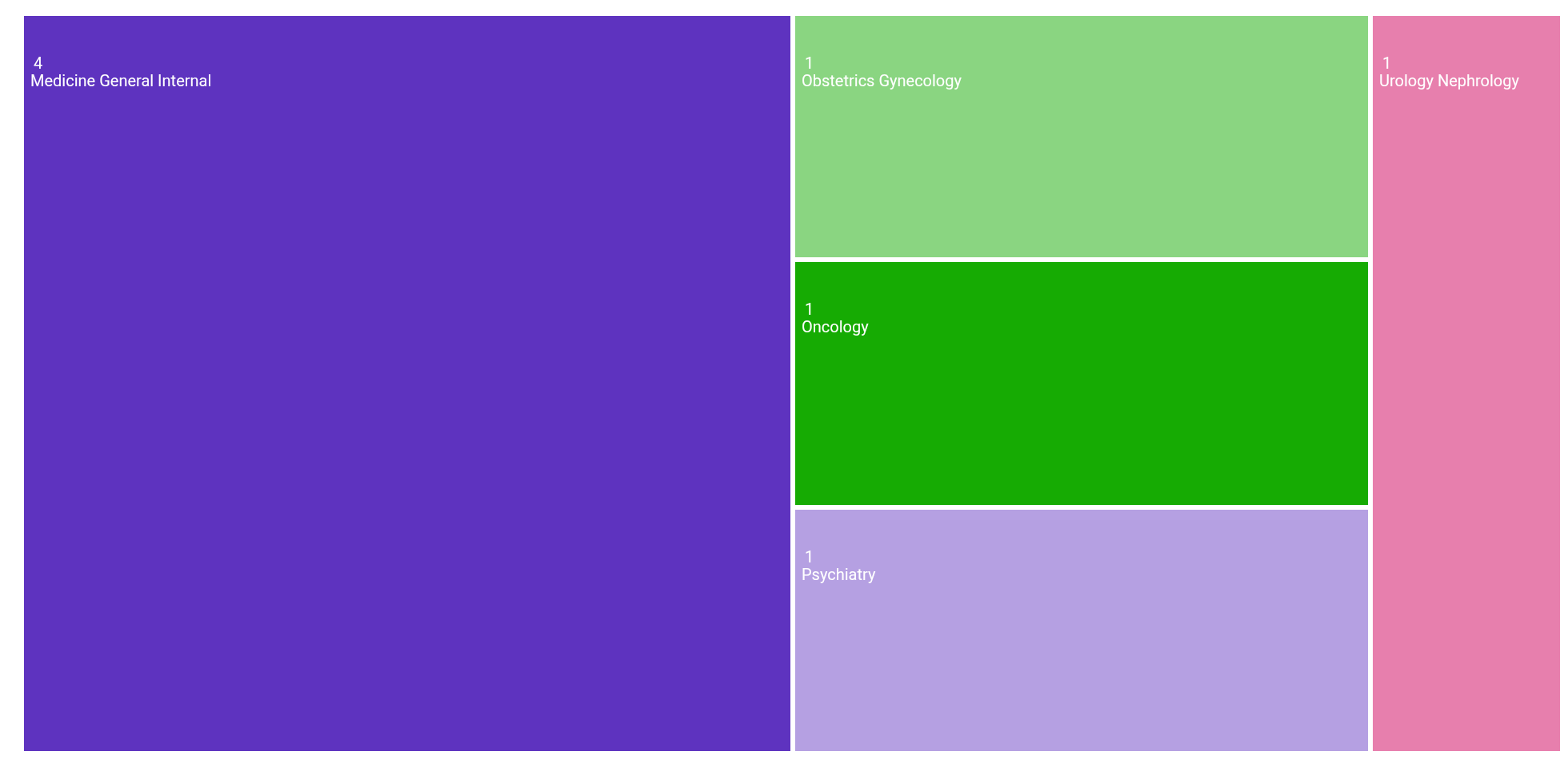 | Medicine General Internal | 4 | 57.143% |