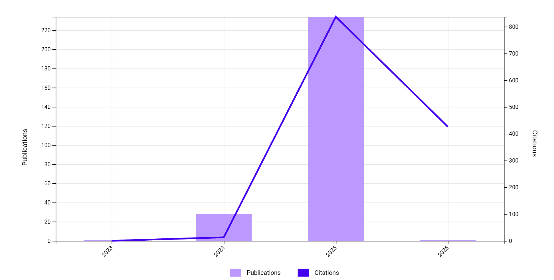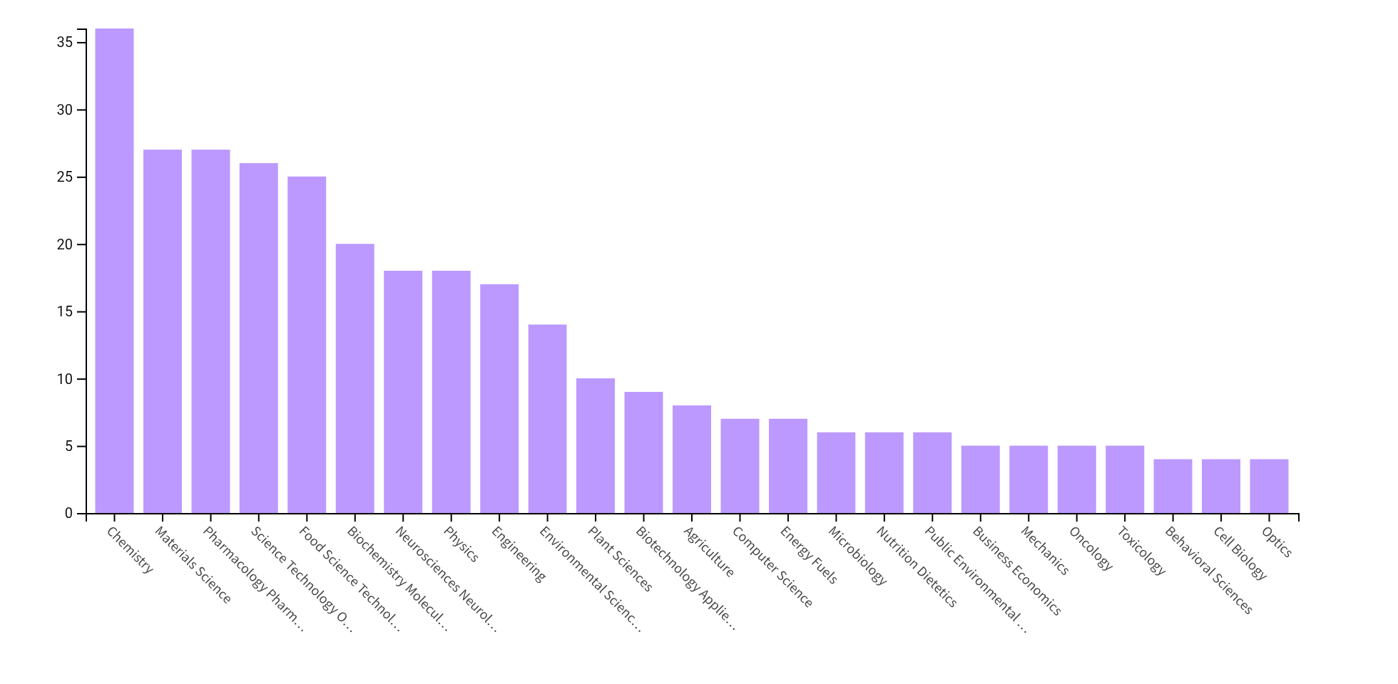 - Research is highly concentrated in chemistry and life science-related disciplines.