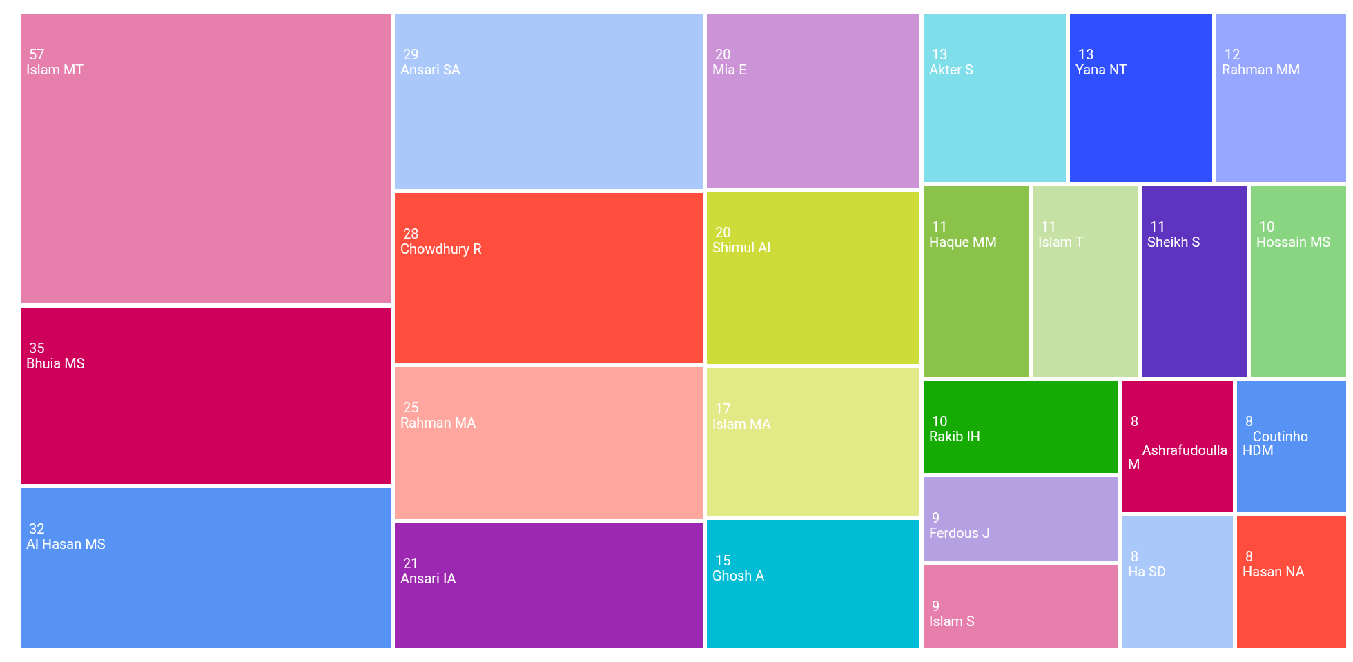 | Islam, Muhammad Torequl | 22 | 8.333% |