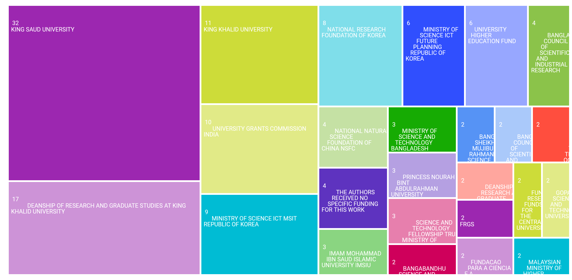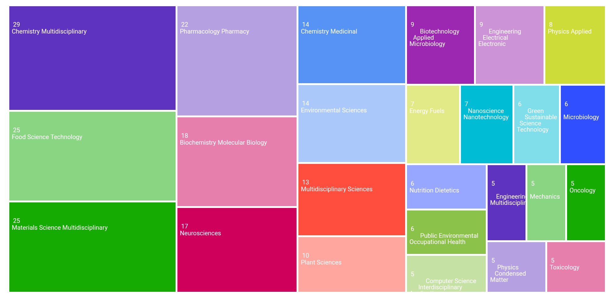 The areas of research publication categories in the TreeMap: