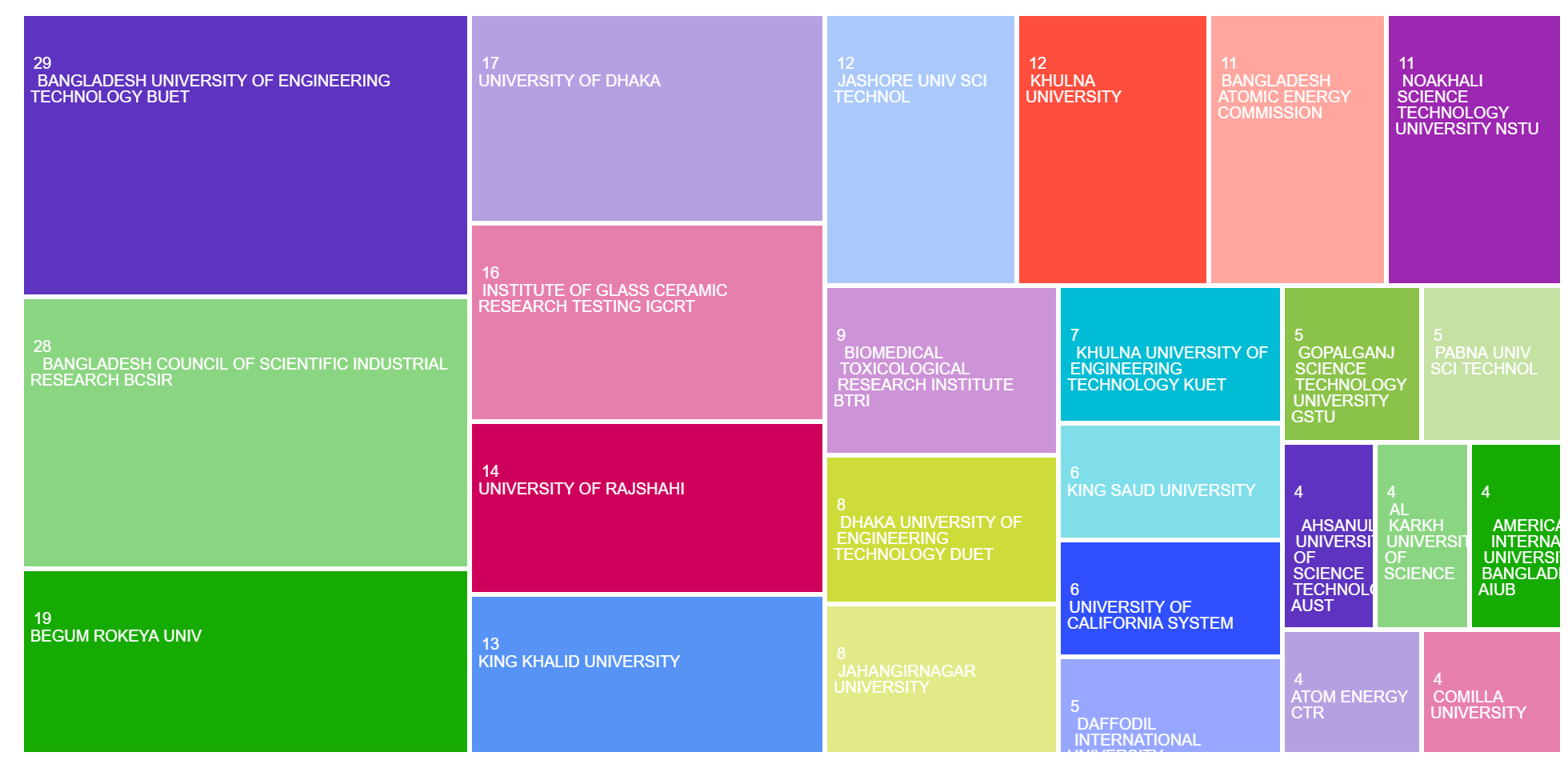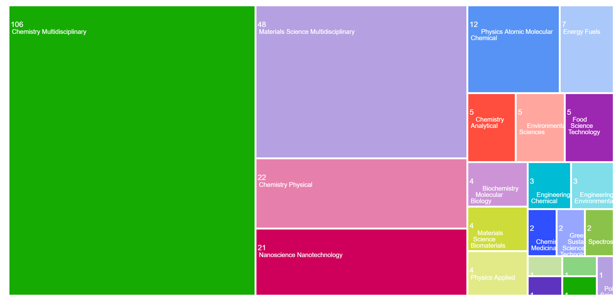The areas of research publication categories in the TreeMap: