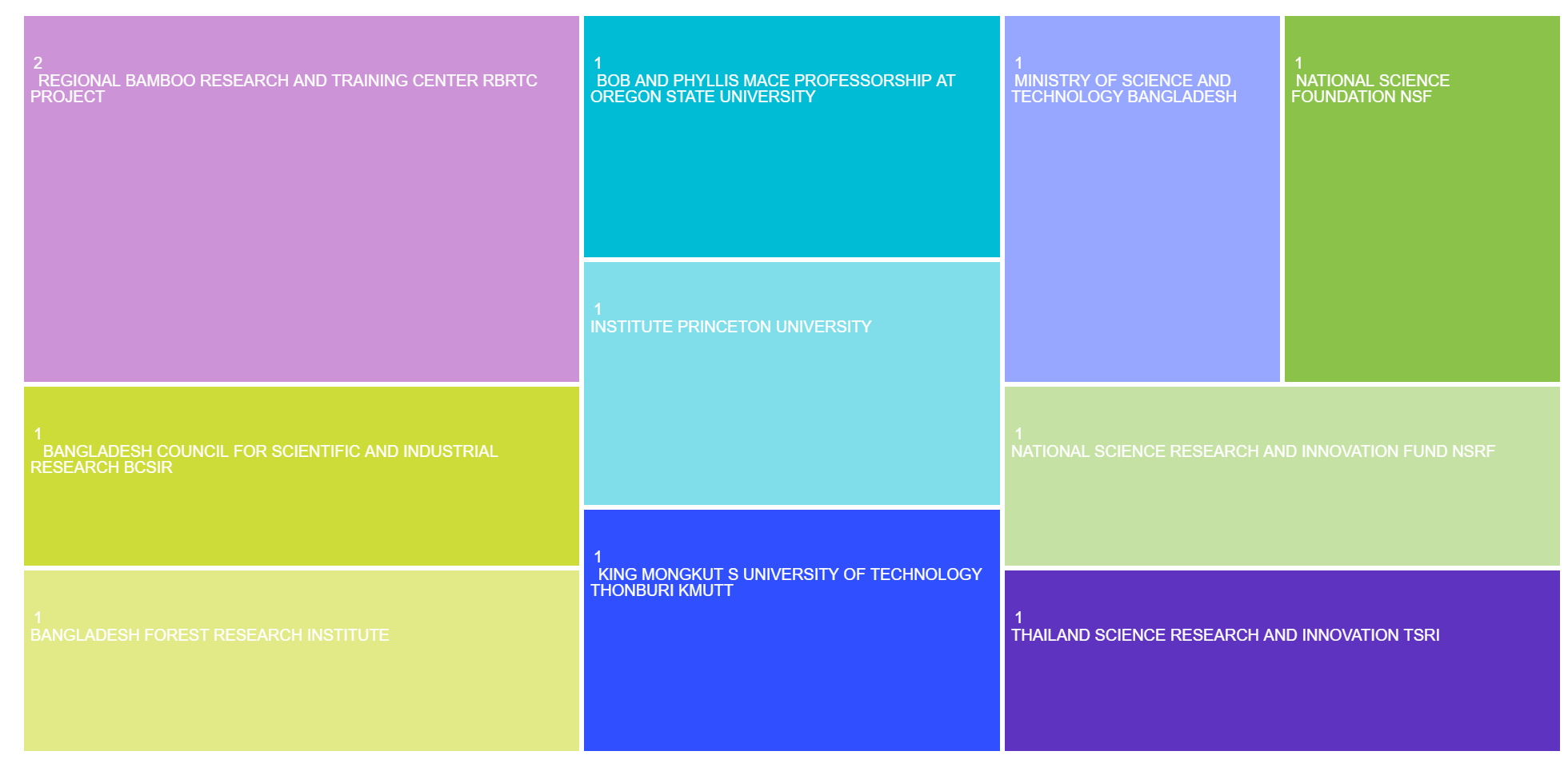 The areas of research publication categories in the TreeMap: