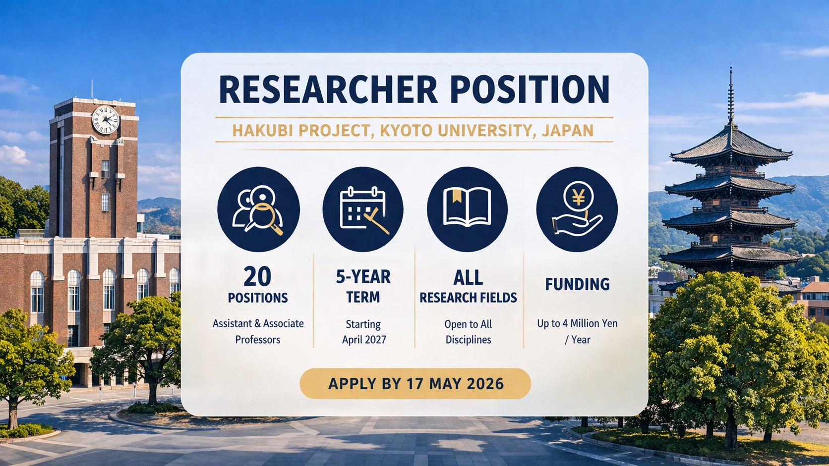 The Hakubi Project, established in 2009, aims to develop world-class researchers by providing academic freedom, institutional support, and a collaborative research environment. Selected candidates will be appointed as program-specific faculty members and conduct independent research in their chosen fields.