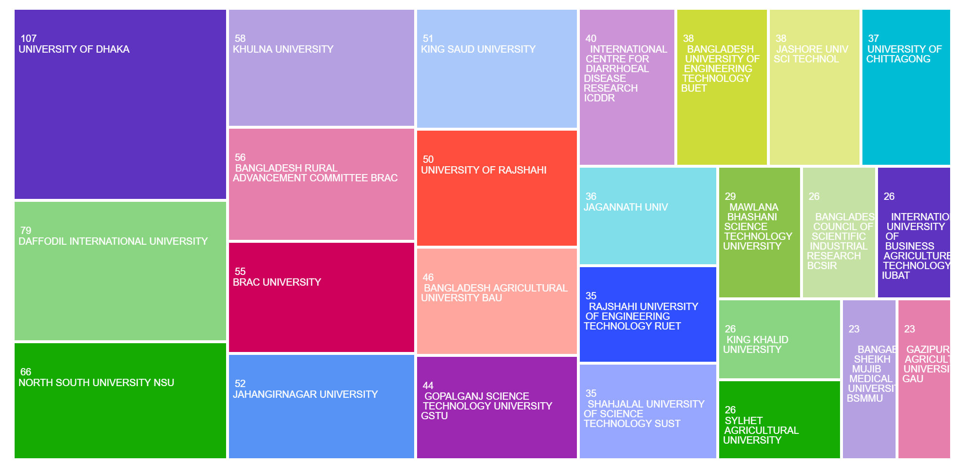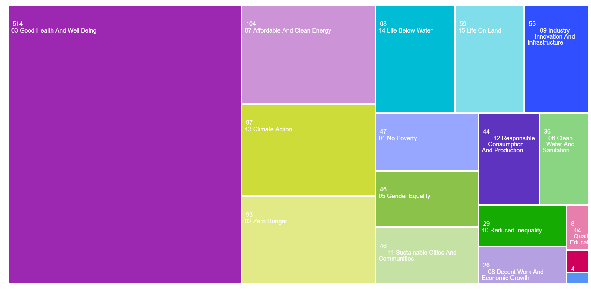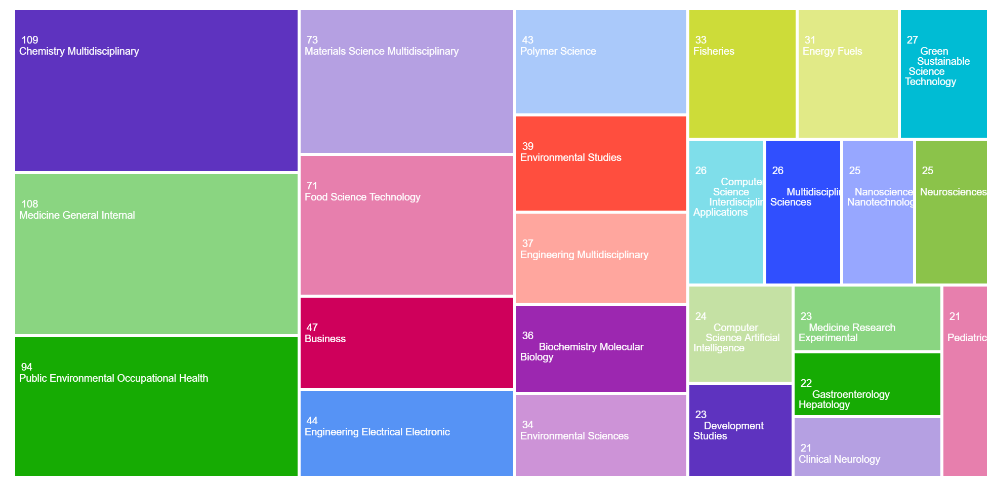 The areas of research publication categories in the TreeMap: