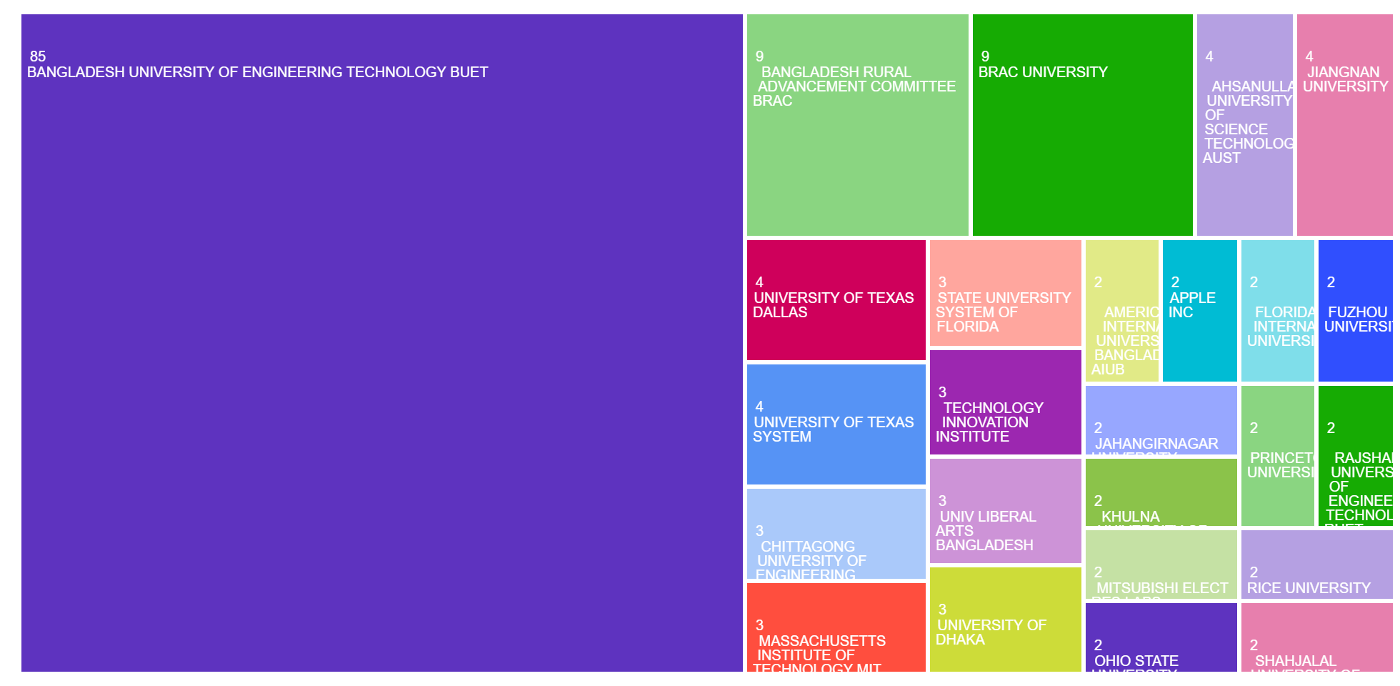 The Department of EEE at BUET alone contributed over a quarter of all Bangladeshi publications in the dataset.