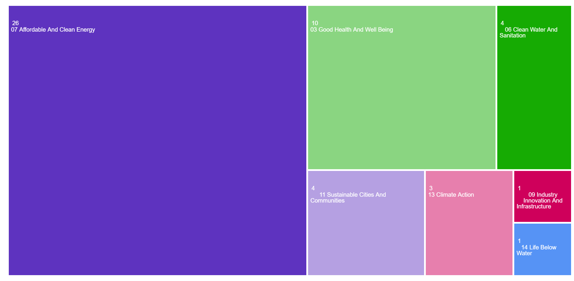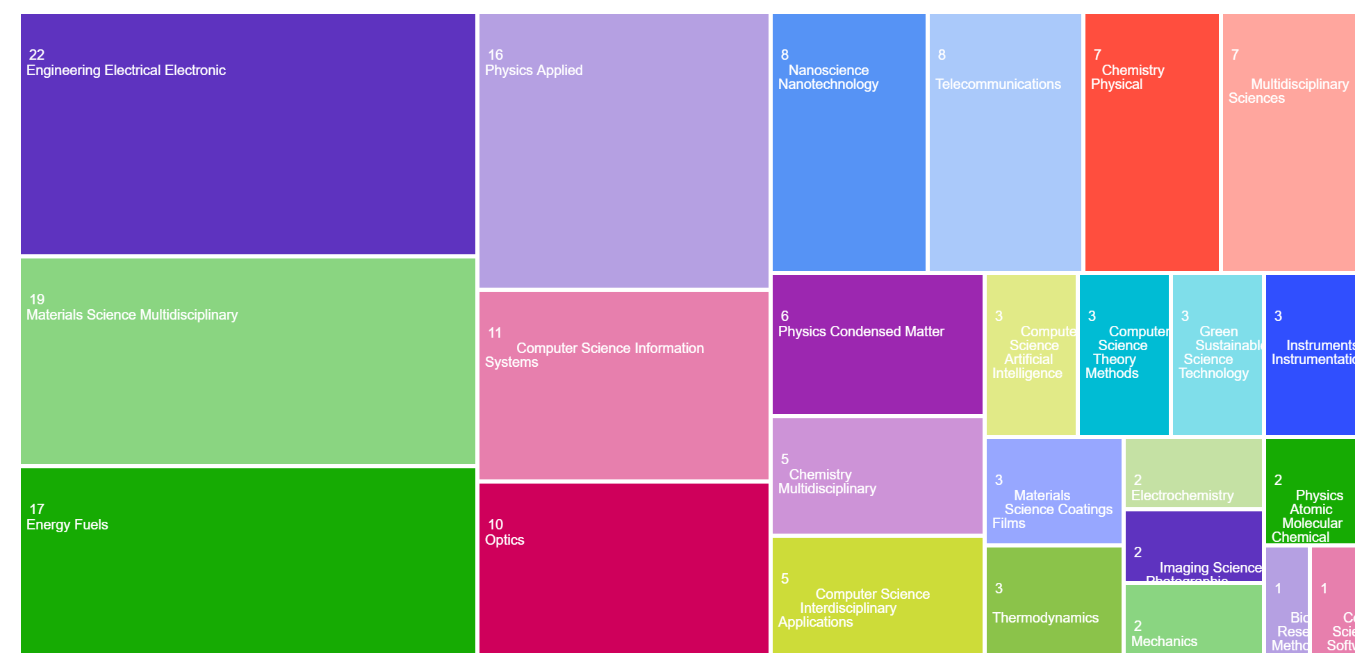 The areas of research publication categories in the TreeMap:
