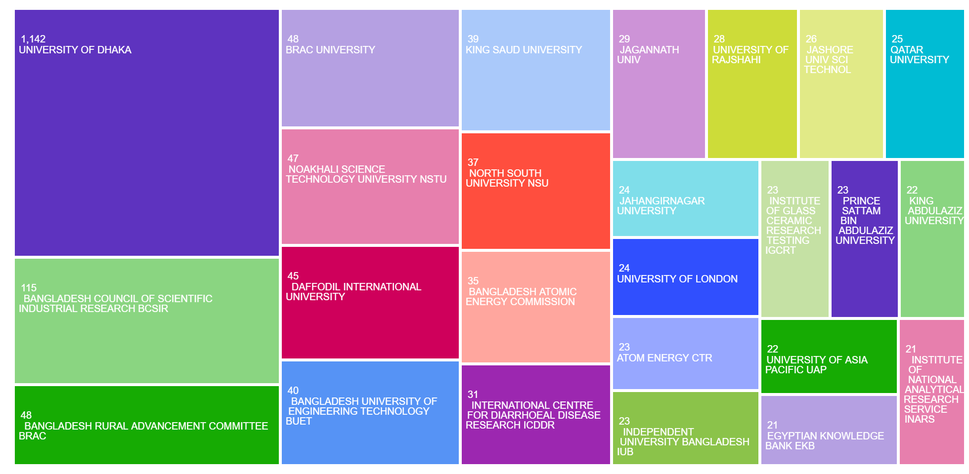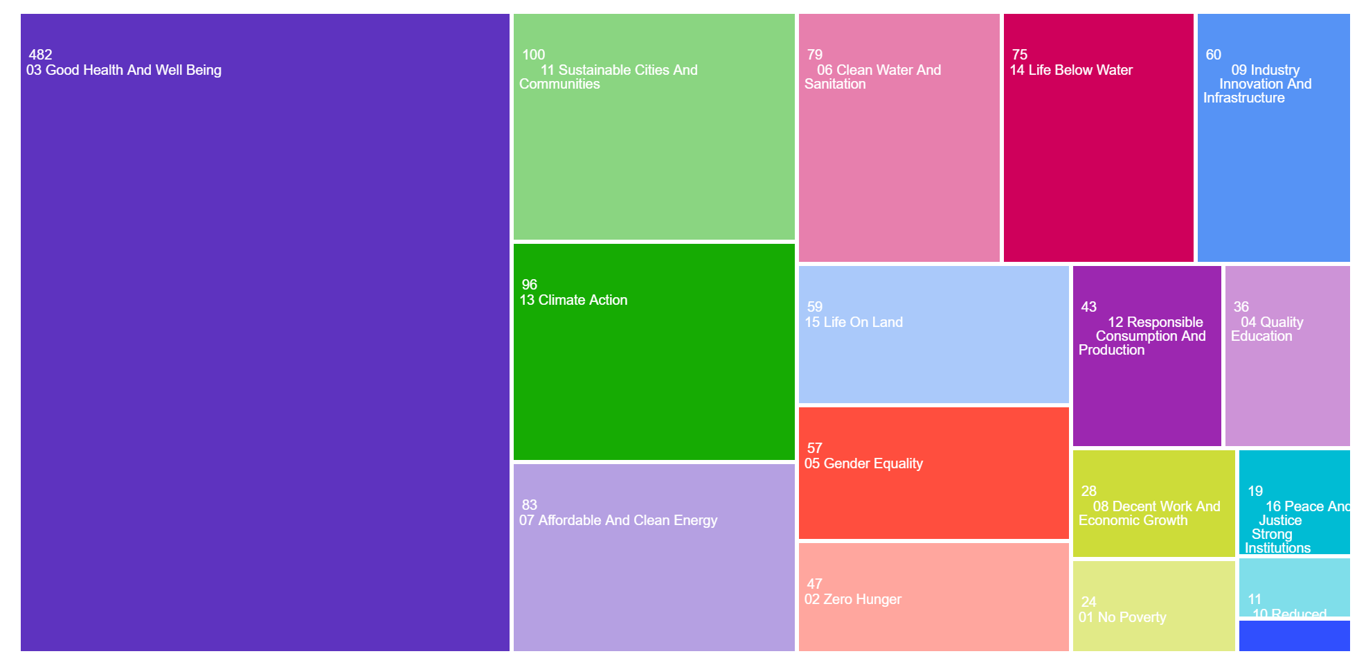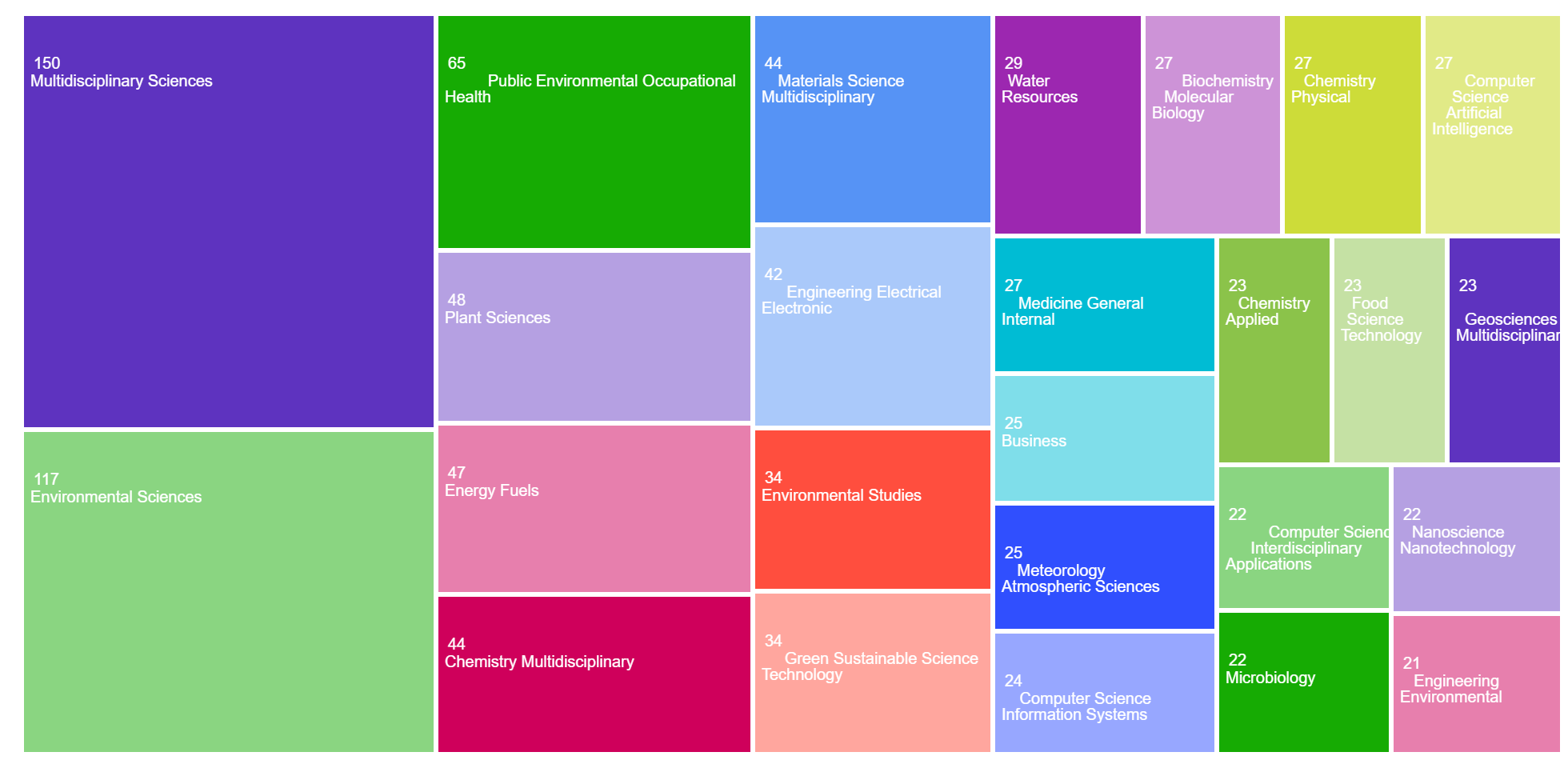 The areas of research publication categories in the TreeMap: